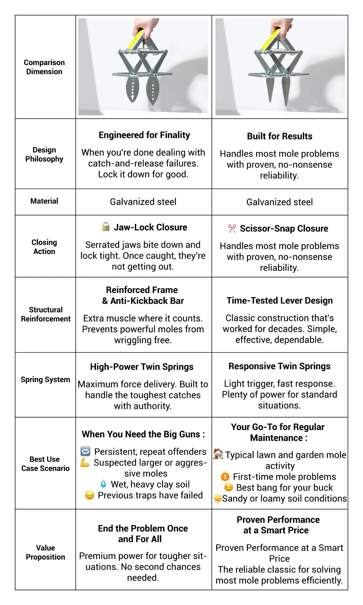 The most successful mole traps are heavy-duty, spring-loaded designs that strike quickly inside active tunnels. This trap, with its scissor-jaw style and serrated edges, is proven to deliver high capture rates.